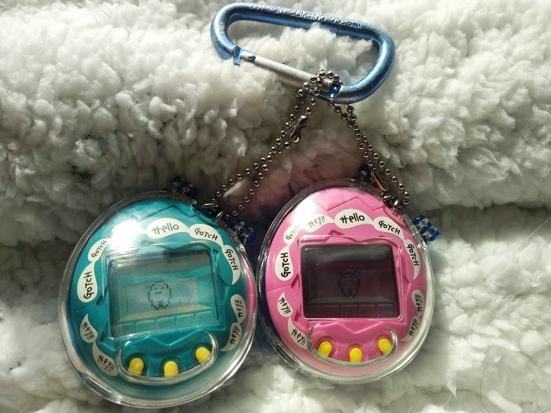 My girlfriend, Brittany, and I thought it would be a fun idea to play them together. I asked her which colors she liked the most and she loved the Blue/Pink pair, so it was settled. We officially hatched our first ones a couple of days after they arrived and tried to get the Bunbuntchi & Bunkotchi characters, we thought they were so cute! We saw they needed "average" care so I tried to neglect them since I usually take good care of them; however... I accidentally neglected them too much. :( We received the adults Megatchi & Gankotchi which we find somewhat ugly (in a cute way).