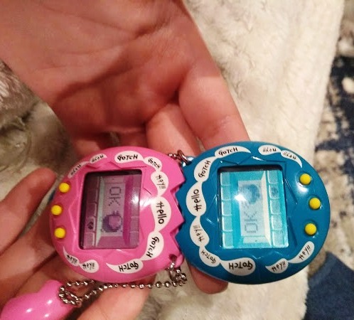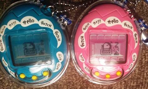 My girlfriend, Brittany, and I thought it would be a fun idea to play them together. I asked her which colors she liked the most and she loved the Blue/Pink pair, so it was settled. We officially hatched our first ones a couple of days after they arrived and tried to get the Bunbuntchi & Bunkotchi characters, we thought they were so cute! We saw they needed "average" care so I tried to neglect them since I usually take good care of them; however... I accidentally neglected them too much. :( We received the adults Megatchi & Gankotchi which we find somewhat ugly (in a cute way).