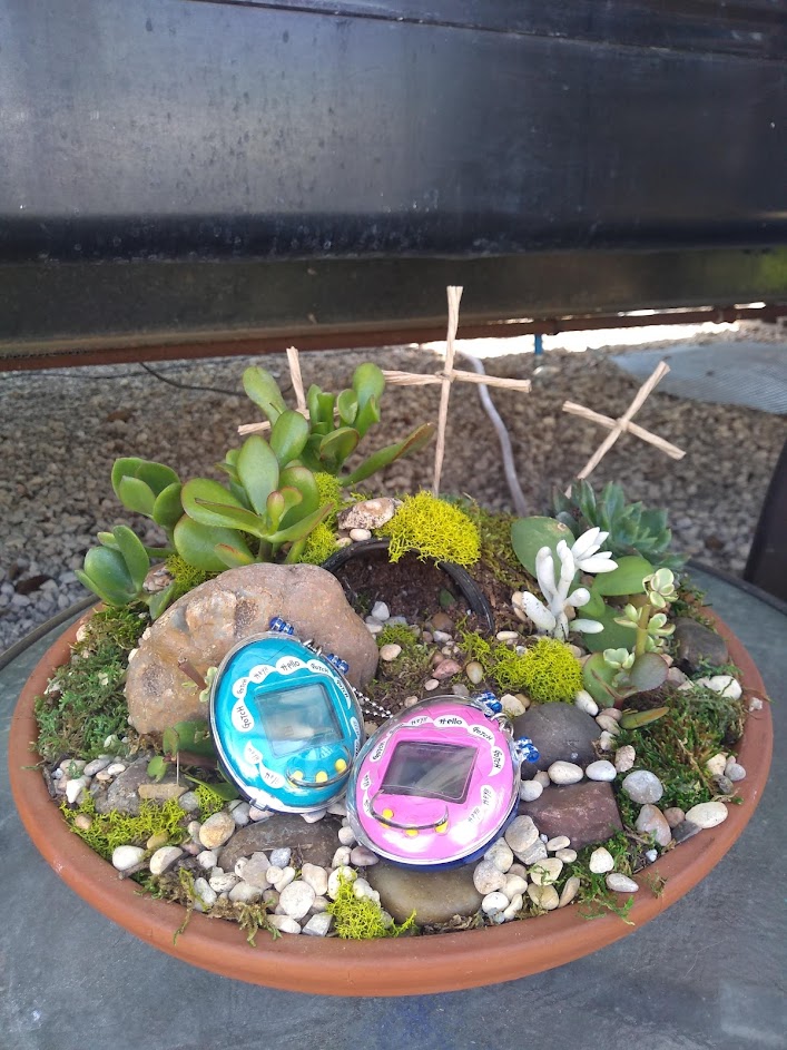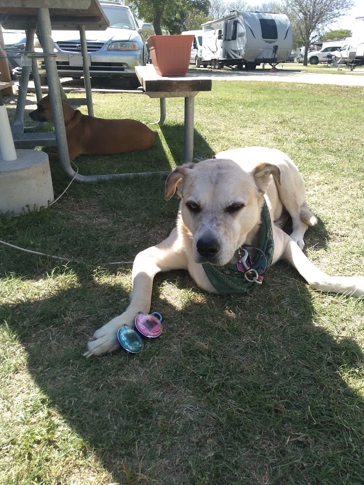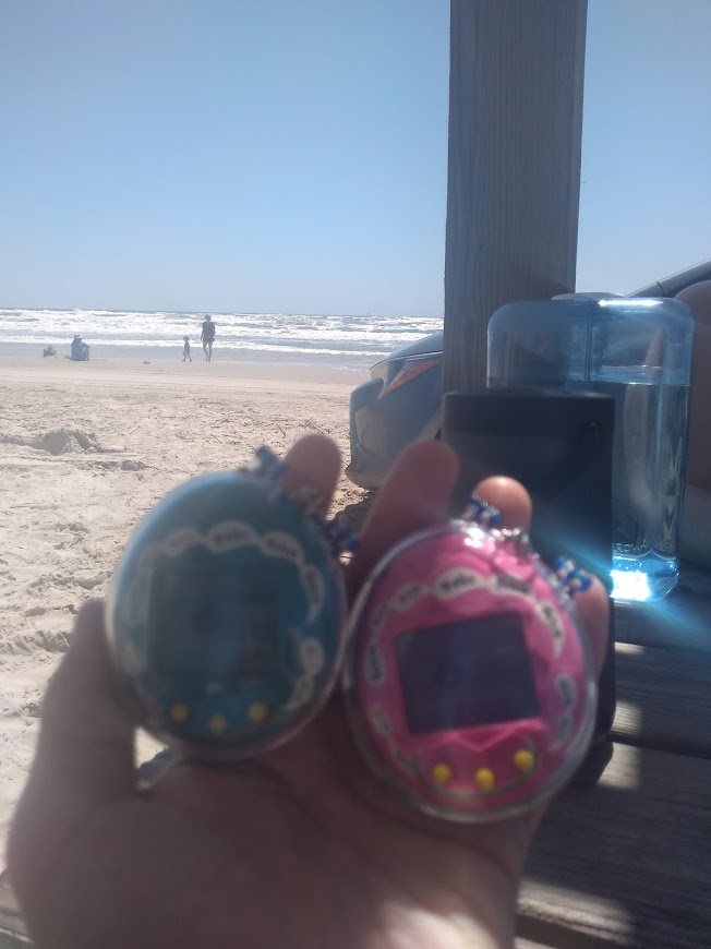The weather is crisp, there's a nice breeze, and the sky is sunny. Brittany's mom's dogs are enjoying the day out in the RV park. Chance (white dog) and Cable (brown dog) are basking in the sun. At this point, I realized I wanted to begin caring for the new generation of Tamas. I discussed with Brittany what we should name them and I thought an ocean theme would be cool. I named the Osutchi Seashell, and Brittany named her Mesutchi Coral :) Super cute names!!!
