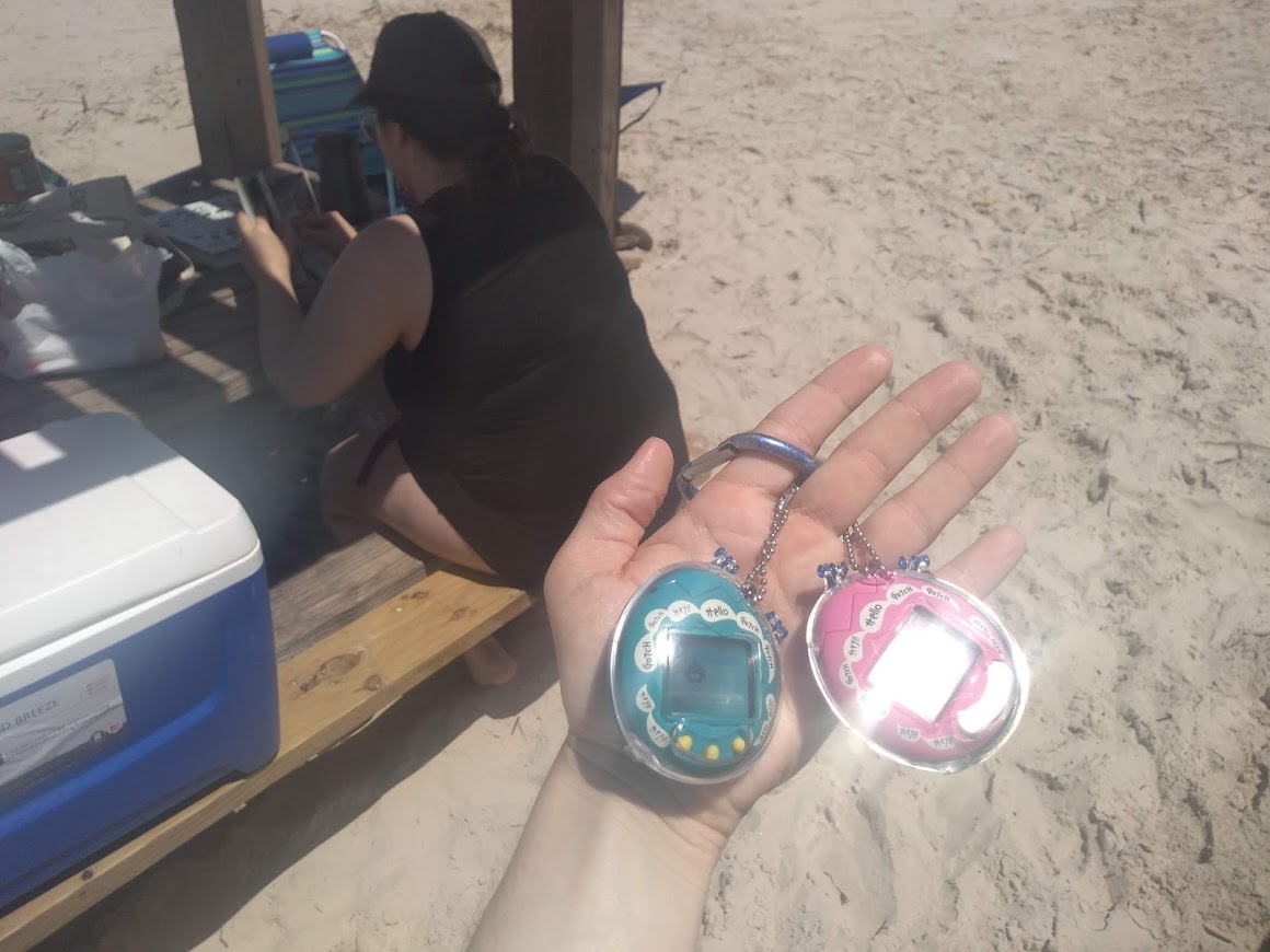 10:00AM: Seashell & Coral beeped exactly at 10AM as they woke up! They had 2/4 hunger and 0/4 happiness so I fed them and played a few games.